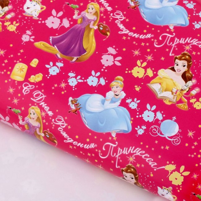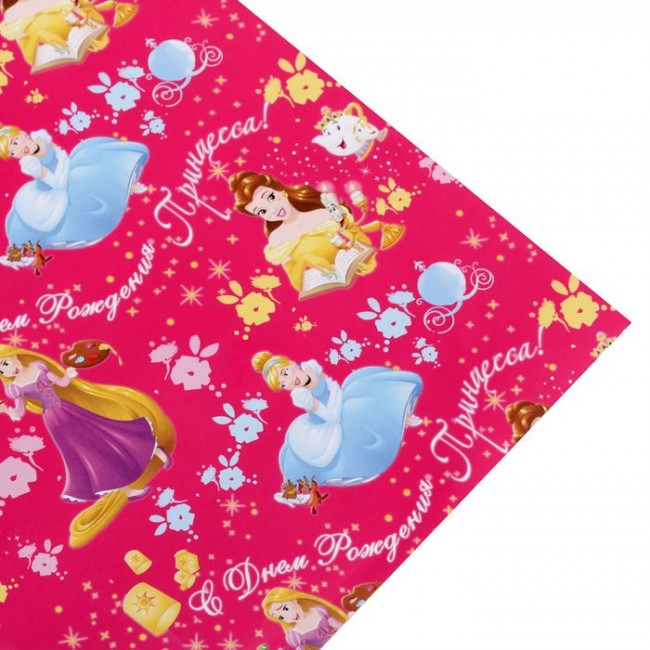 Бумага упаковочная глянцевая "С Днем Рождения, Принцесса", 50х70 см, Принцессы