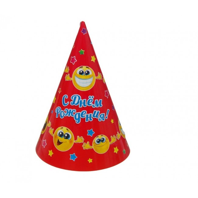 Бумажные колпаки "С днём рождения! Смешные смайлы", 16 см