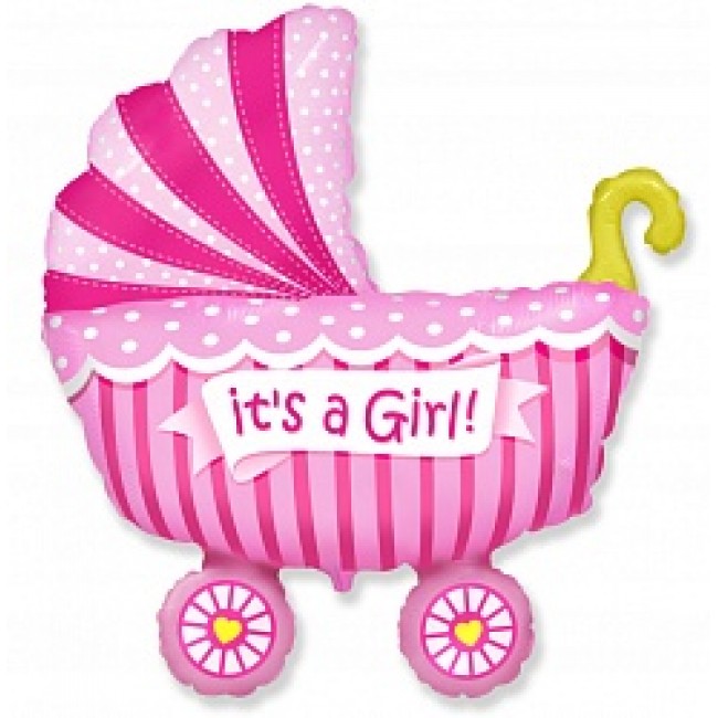 Если у вас родилась дочь и вы не знаете как оригинально встретить её и её маму из роддома, то вам подойдёт розовый шар в форме коляски! Такой шар подарит хорошее настроение и долгие воспоминания.