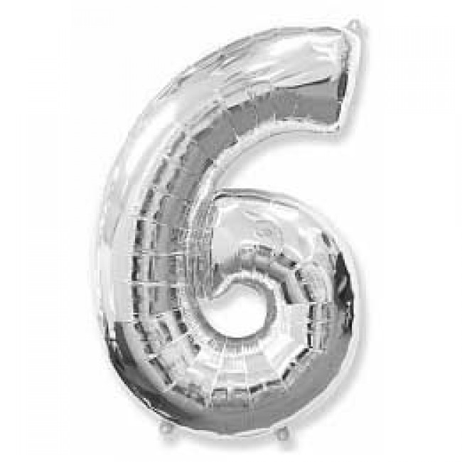 - Фольгированный шар (40"/102 см) Цифра, 6, Серебро