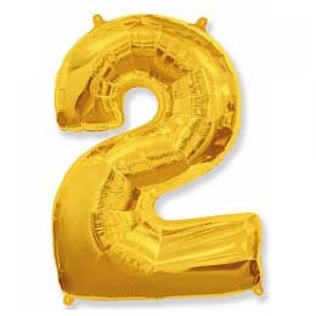 - Фольгированный шар (40»/102см) Цифра, 2, Золото