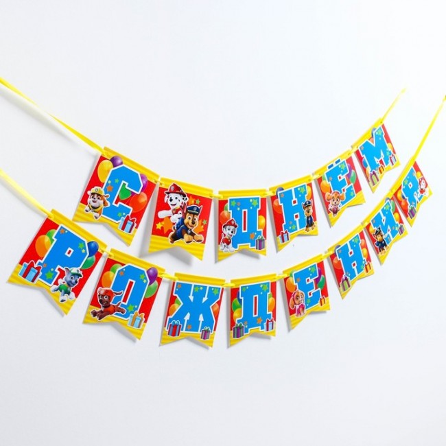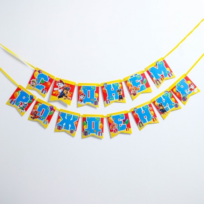 - Гирлянда на ленте "С Днем рождения!", команда, Щенячий патруль, дл. 215 см