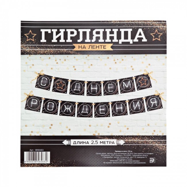 - Гирлянда на ленте "С Днем Рождения" (мужская), 250 см