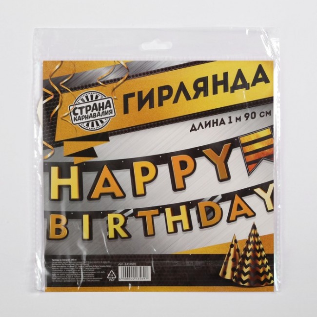 Гирлянда на люверсах "Happy Birthday", мужская, 190 см