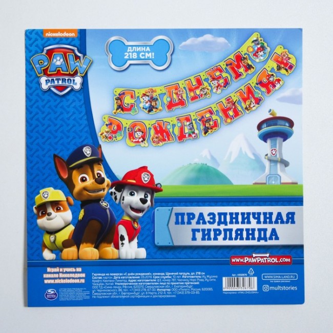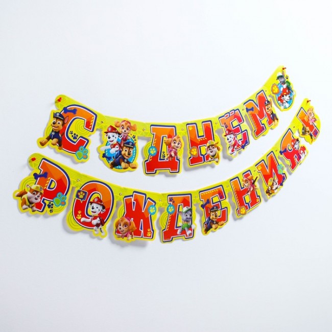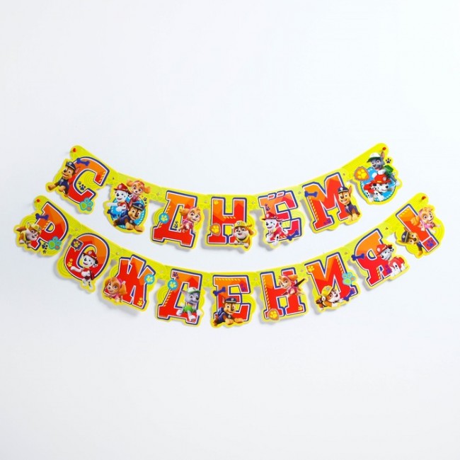 - Гирлянда на люверсах "С Днем рождения!", команда, Щенячий патруль, дл. 218 см