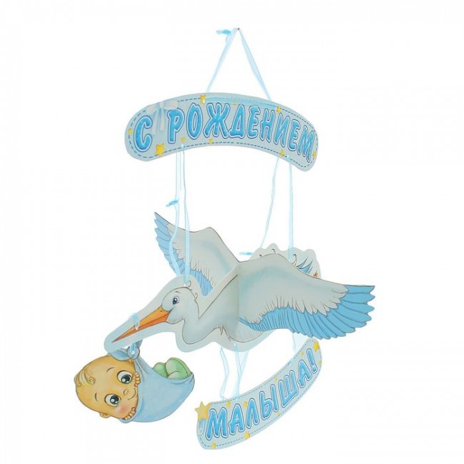 Рождение малыша — большая радость для всей семьи. Хотите оригинально оформить зал или комнату? Гирлянда объемная "С рождением малыша!" — отличное украшение торжества. Аксессуар из картона с яркой двусторонней печатью и дополнительными элементами на ленте создаст атмосферу праздника и радости. Чтобы украшение стало объёмным, вставьте дополнительный элемент в основу крест-накрест.