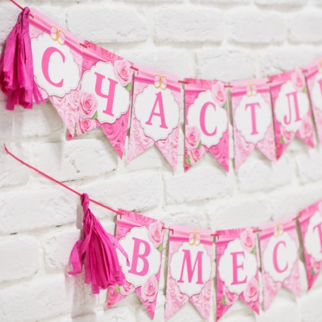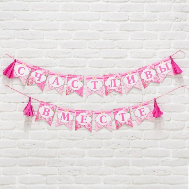 - Гирлянда свадебная с тишью на ленте "Счастливы вместе"