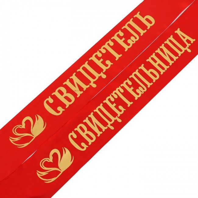 - Комплект лент "Свидетель, свидетельница", атлас, красный, 2 шт.