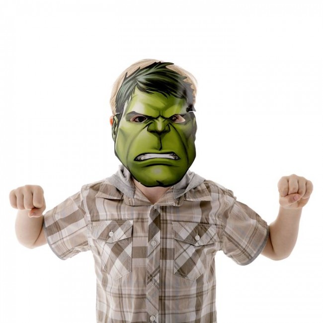 Яркая маска из картона дополнена удобной резинкой, которая надёжно зафиксирует её на голове.