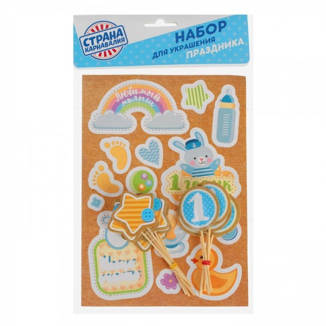 - Набор для украшения праздника «Малыш 1 годик», наклейки, 12 шпажек