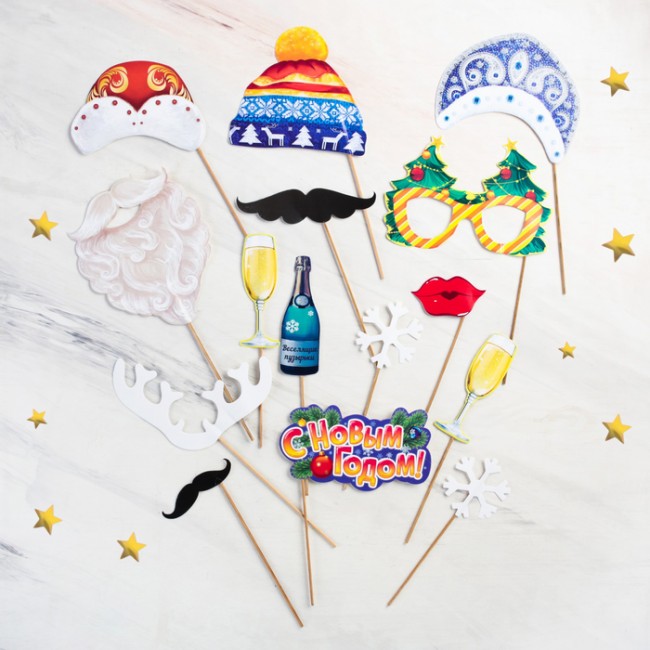 Хотите сделать праздник незабываемым? Набор фотобутафории для новогодней вечеринки — незаменимый помощник в таком деле. В него входят 15 ярких тематических предметов на деревянной ножке, которые преобразят вас до неузнаваемости или придадут особенный шарм.