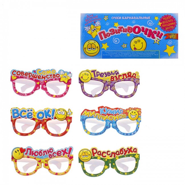 Набор карнавальных очков "ПозитивОЧКИ" (6 шт. в наборе)