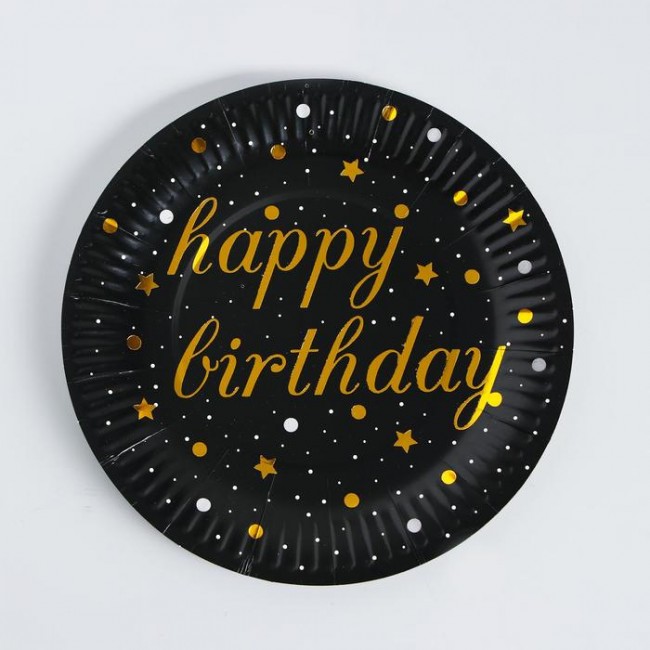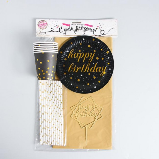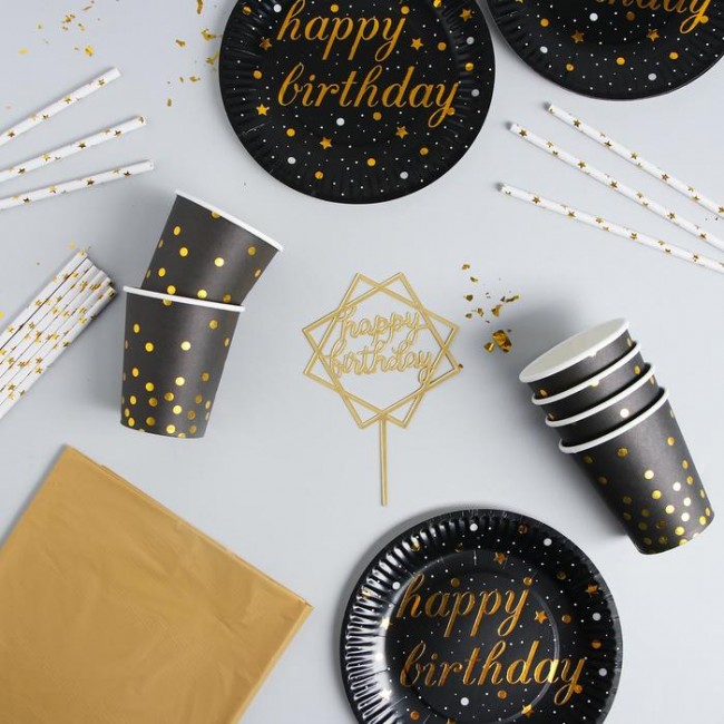 - Набор посуды «С Днём Рождения», цвет чёрно-золотой