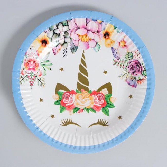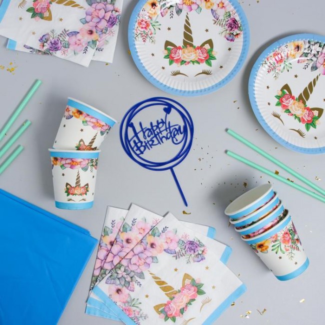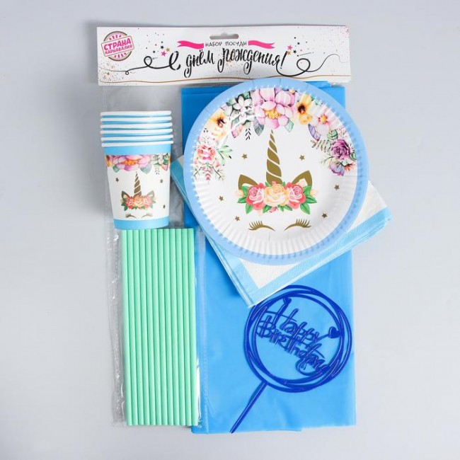 - Набор посуды «С Днём Рождения», единорожка, цвет голубой