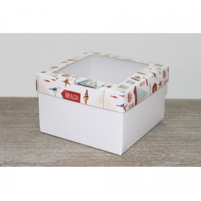Подарочная коробка 150*150*100мм, с белым дном, с окном, морская