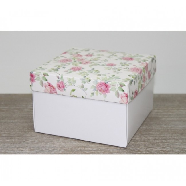 Подарочная коробка 150*150*100мм, с белым дном, цветы