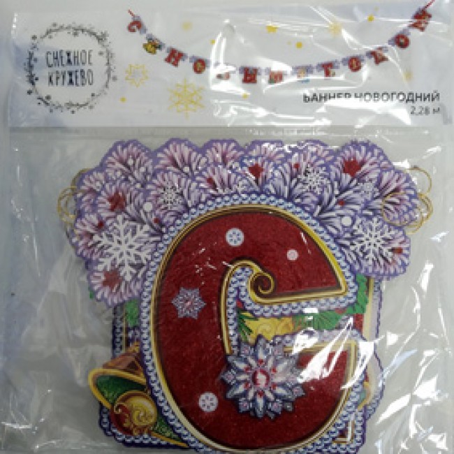 - Гирлянда "С Новым годом" снежинки, 228 см