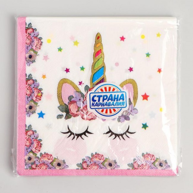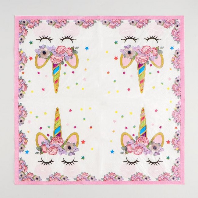 - Салфетки бумажные "Единорог с цветами" 33х33 см, набор 20 шт