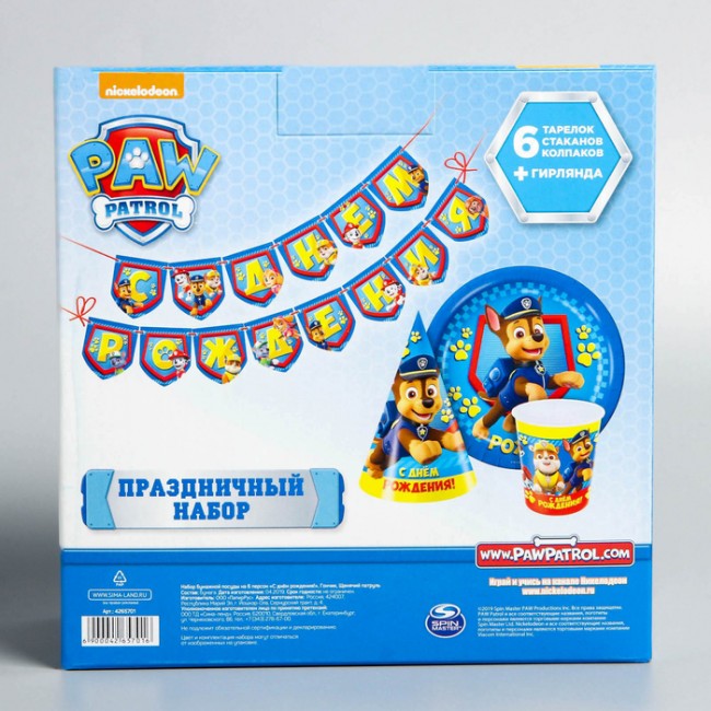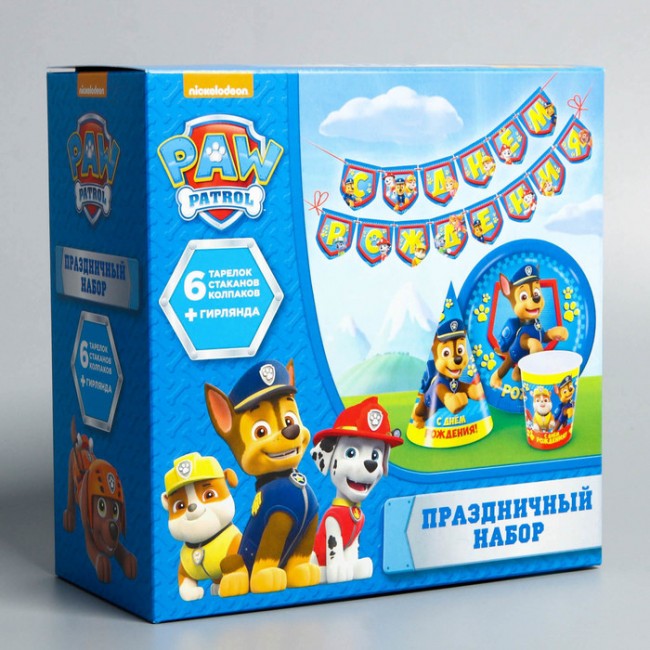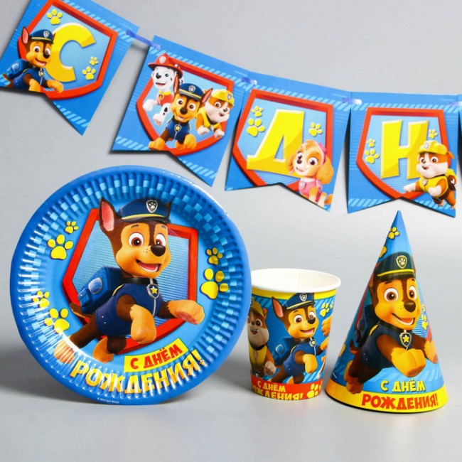 - Щенячий патруль. Бумажная посуда «С Днем Рождения!», набор на 6 персон, PAW Patrol
