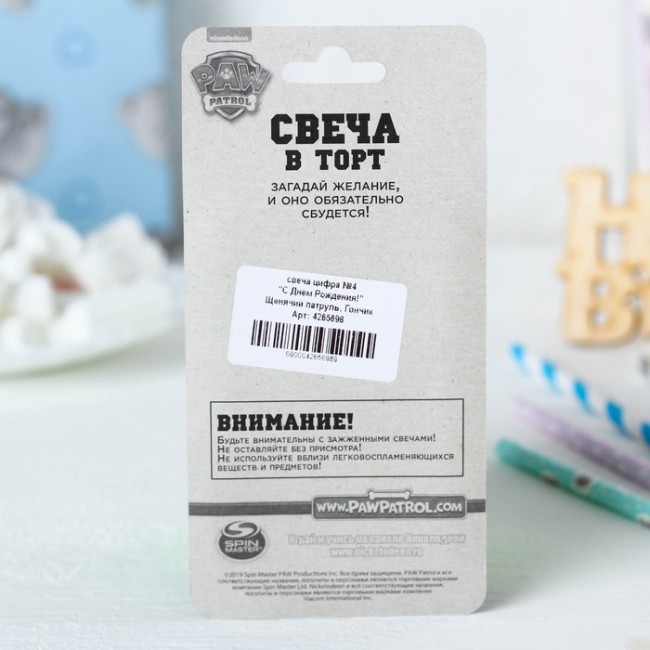 - Щенячий патруль. Свеча в торт "С Днем рождения", PAW Patrol