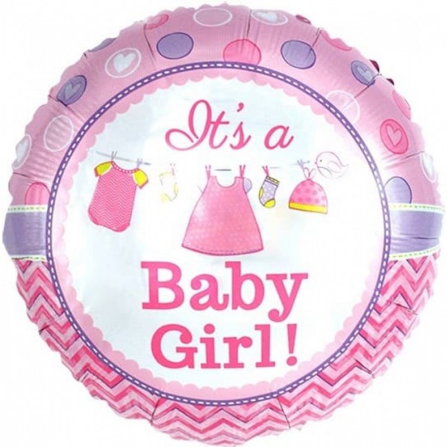 - Шар (18''/46 см) Круг, С Рождением Малышки!, Розовый, 1 шт.
