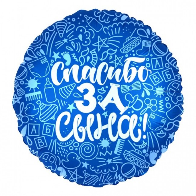 - Шар (18''/46 см) Круг, Спасибо за сына!, Синий, 1 шт.