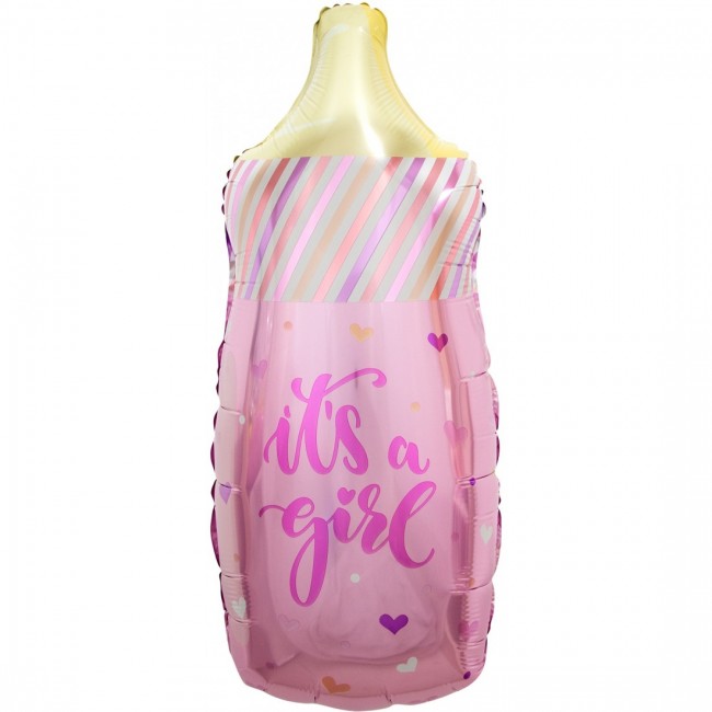 - Шар (33''/84 см) Фигура, Бутылочка для малышки (сердечки), Розовый, 1 шт.