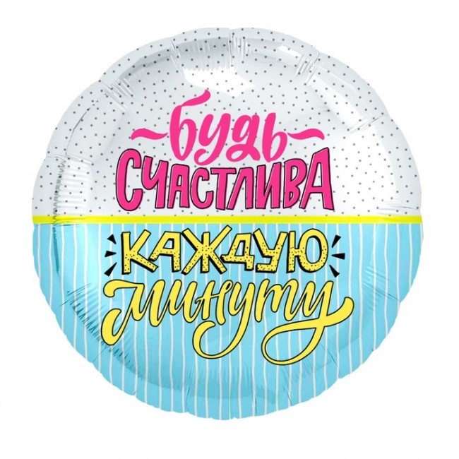 - Шар фольгированный 18" круг "Будь счастлива, каждую минуту" 754825