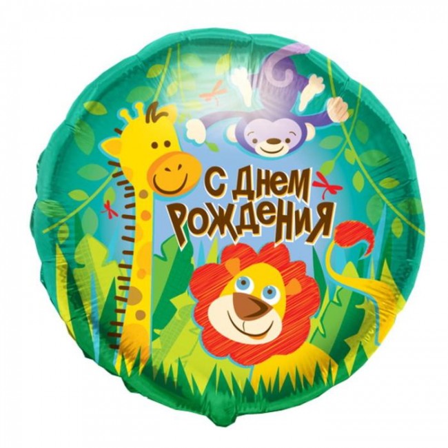 - Шар фольгированный 18" круг «С Днем Рождения. Джунгли»