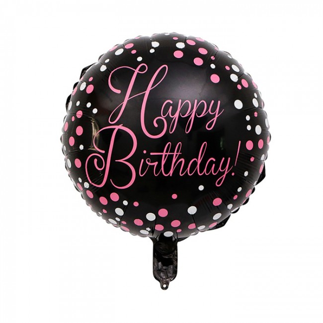 - Шар фольгированный 18" "С днем рождения", точки, круг