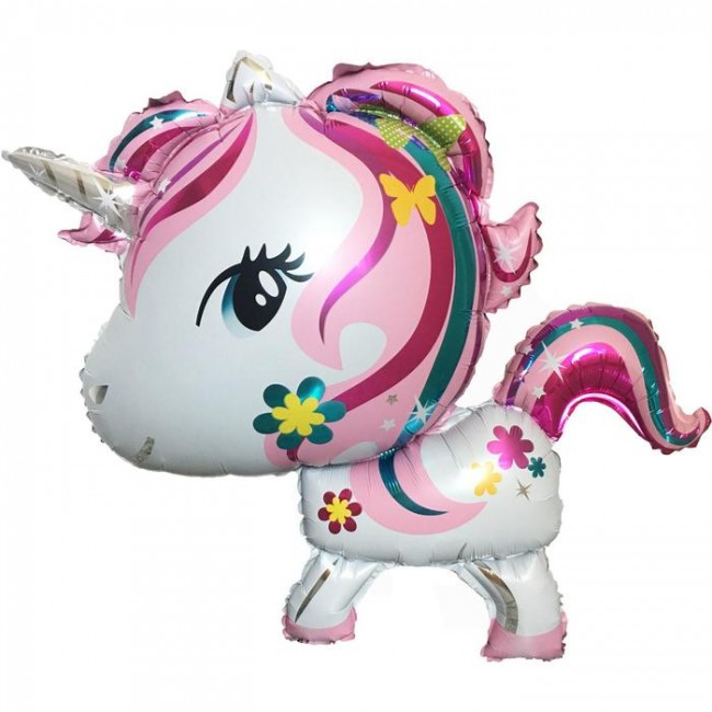 - Шар фольгированный 36" «Волшебный единорог в цветах», фигура, цвет розовый