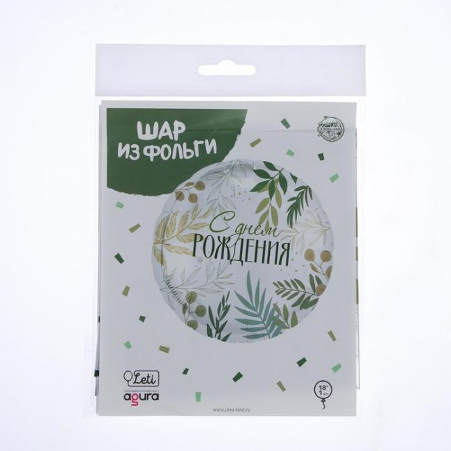 - Шар фольгированный круг 18" «С Днём рождения. Листья»