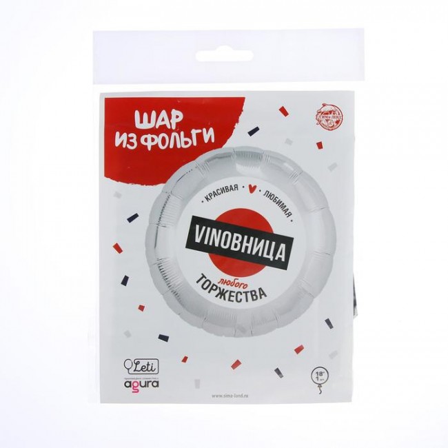 - Шар фольгированный круг 18" «ВинОвница», цвет серебро