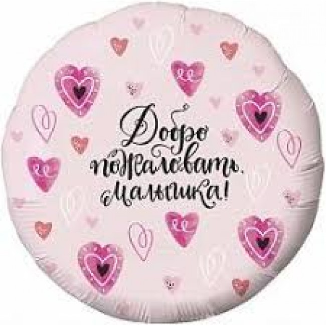 Характеристики Фольгированный шар на выписку из роддома "Добро пожаловать, Малышка!" (сердечки), Розовый, 1 шт.