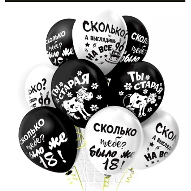 - Воздушный шар "Оскорбительный", бело-черные, 12"