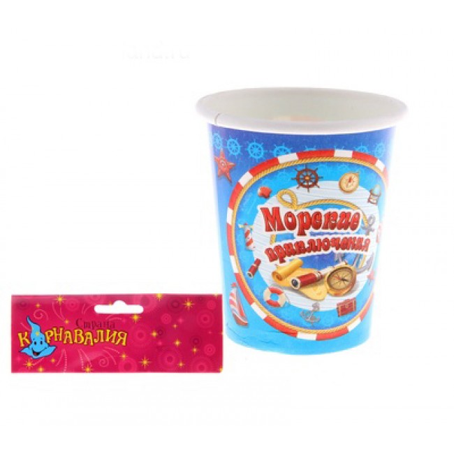 Стакан бумажный "Морские приключения" 225 мл, набор 6 шт