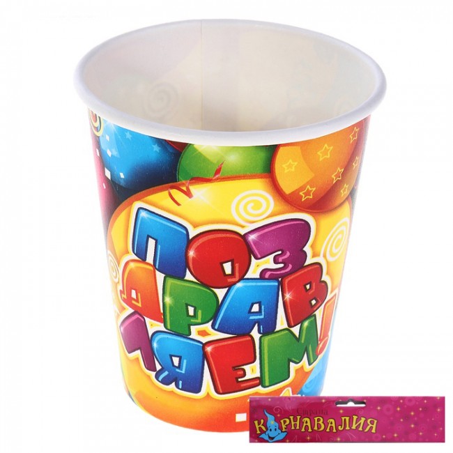 Стакан бумажный "Поздравляем!" ( набор 6 шт)