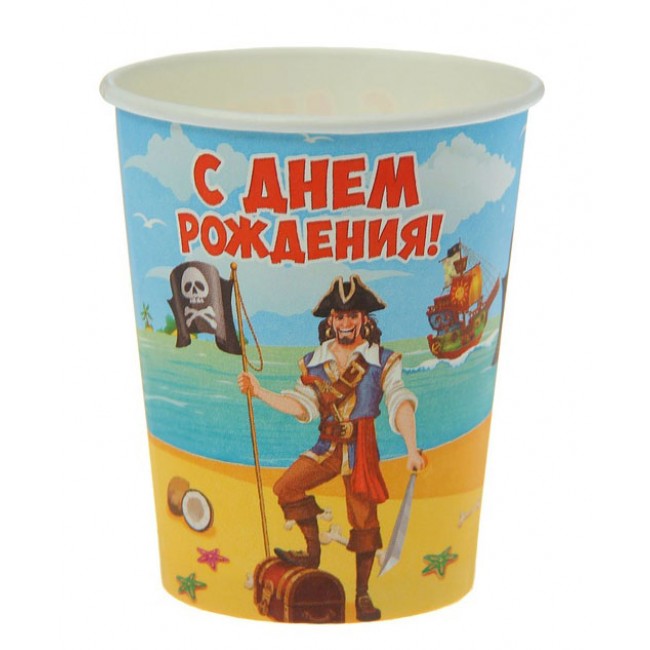 - Стакан бумажный "С днем рождения" пират (250 мл)