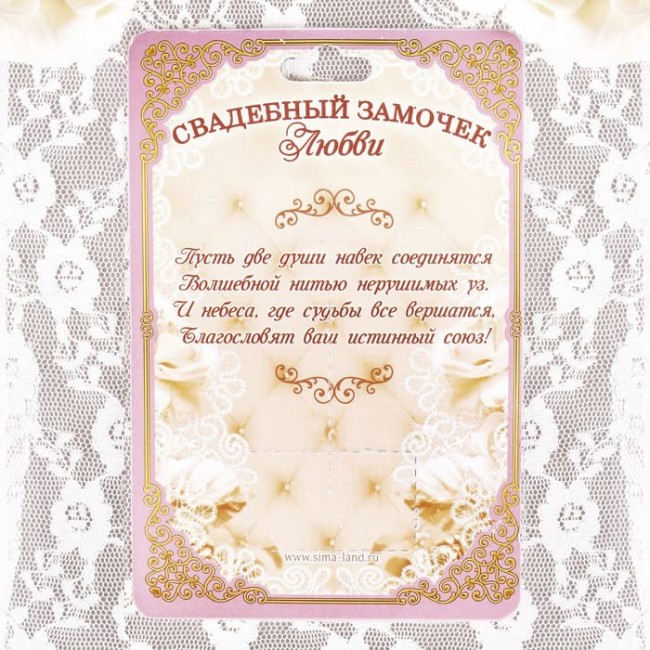 Традиция скреплять союз замочком любви так популярна среди молодожёнов, что теперь в любом городе земного шара есть мост с этими аксессуарами. Сувенир символизирует бесконечную любовь, крепкую и счастливую семью. Ритуал совместного закрытия станет прекрасным дополнением вашего особенного дня.