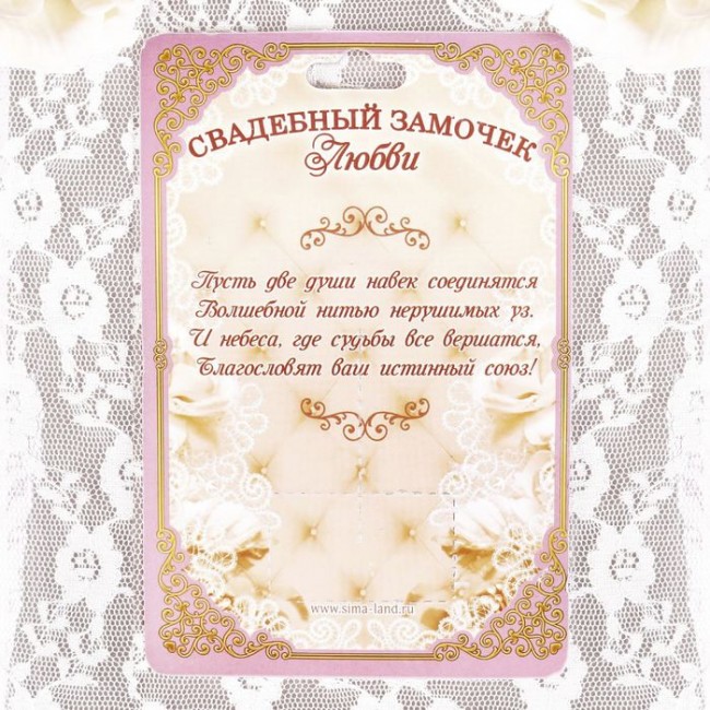 Традиция скреплять союз замочком любви так популярна среди молодожёнов, что теперь в любом городе земного шара есть мост с этими аксессуарами. Сувенир символизирует бесконечную любовь, крепкую и счастливую семью. Ритуал совместного закрытия станет прекрасным дополнением вашего особенного дня.