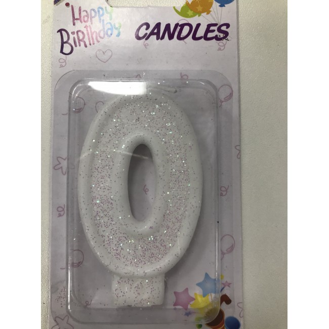 Свеча Белая с блёстками цифра "0"