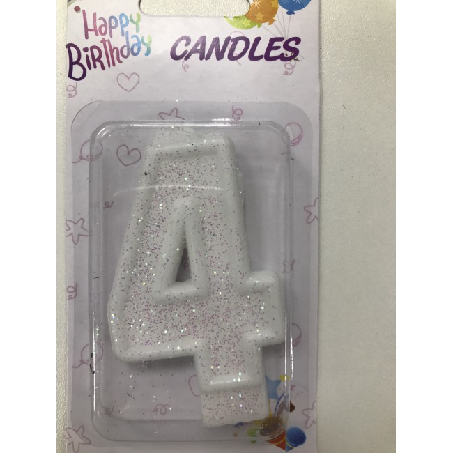 Свеча Белая с блёстками цифра "4"