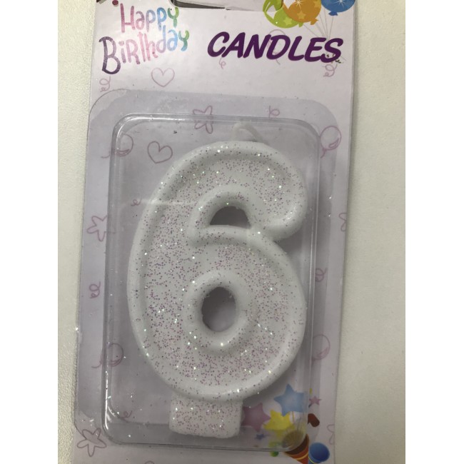 Свеча Белая с блёстками цифра "6"