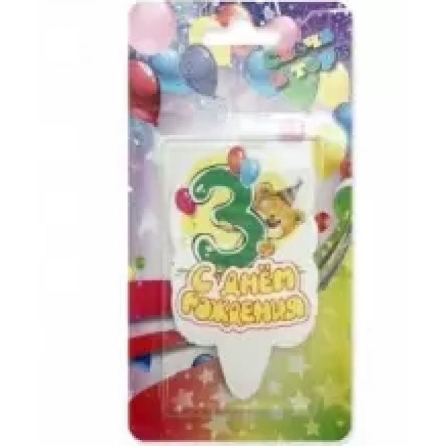 Свеча Цифра 3, Медвежонок, 8 см, 1 шт.