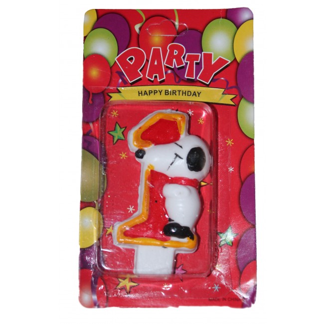 Свеча цифра 1 на День рождение с собачкой Снупи. Красивая яркая свеча цифра в торт на День рождение.