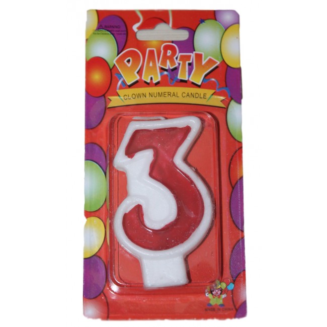 Красная свеча цифра 3 для празднования Дня Рождения - украшение для торта. Праздничный декор стола.