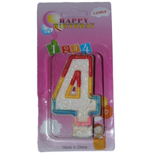 Свеча в торт цифра 4 с блётсками - яркое и интересное дополнение к вашему праздничному торту.