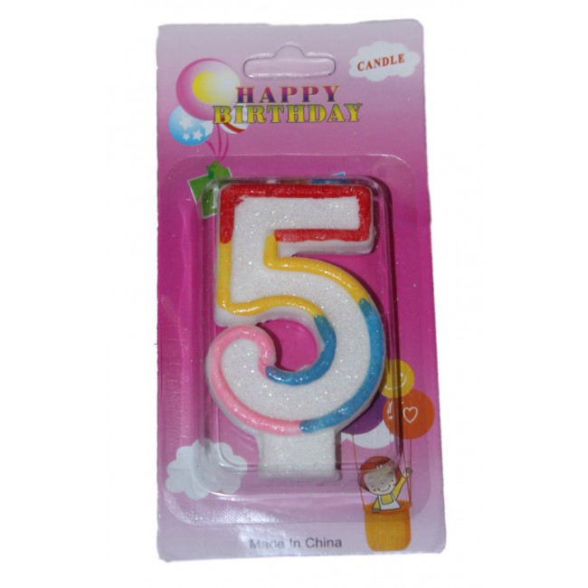 Цифра 5 для торта из воска с блёстками для вашего праздника на 5 лет, 15 лет, 25 лет... 50 лет и т.д. Отличное традиционное украшение в торт на День Рождения.