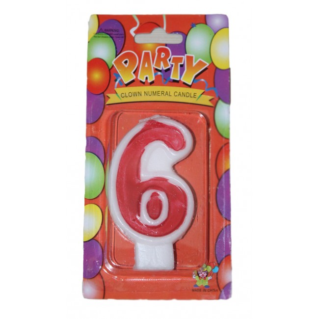 Красная свечка в торт в виде цифры 6 для украшения праздничного именинного торта. В нашем магазине большой выбор праздничных свечей в том числе свечей цифр.