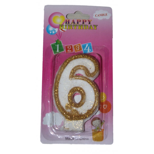 - Свеча цифра 6 золотые блёстки